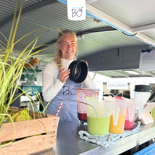 Laat Vitamine Bo daar nou hét perfecte vitaliteitsaanbod voor hebben. Wij blenden ter plekke de allerlekkerste, superverse smoothies. Denk aan sappige aardbeien, tropische mango, spinazie met pit, of een shotje gember om je dag écht scherp te beginnen. Alles 100% natuurlijk, boordevol vitamines én verrassend lekker.